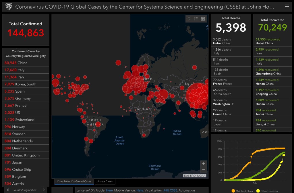 “Dr. Pat” For fun here’s a global map of Covid-19 cases (Johns Hopkins) from earlier today:
