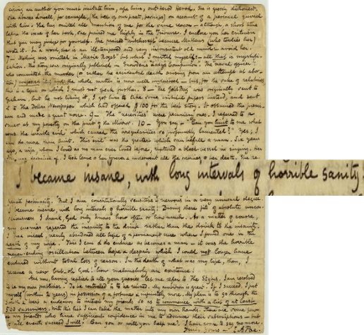 “I became insane, with long intervals of horrible sanity.” — Letter from Edgar Allan Poe to George Washington Eveleth, 4 January 1848. Image courtesy of the Harry Ransom Center.